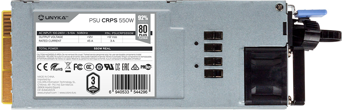 UNYKAch CRPS 550WR 92% Eficiencia Fuente de Alimentación Redundante